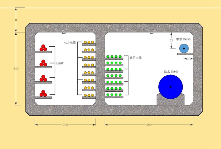 綜合管廊沿濟南奧林匹克體育中心的奧體西路、奧體北路和龍洞路敷設(shè),全長約4公里。納入管線有給水、中水、通信、電力管線。
