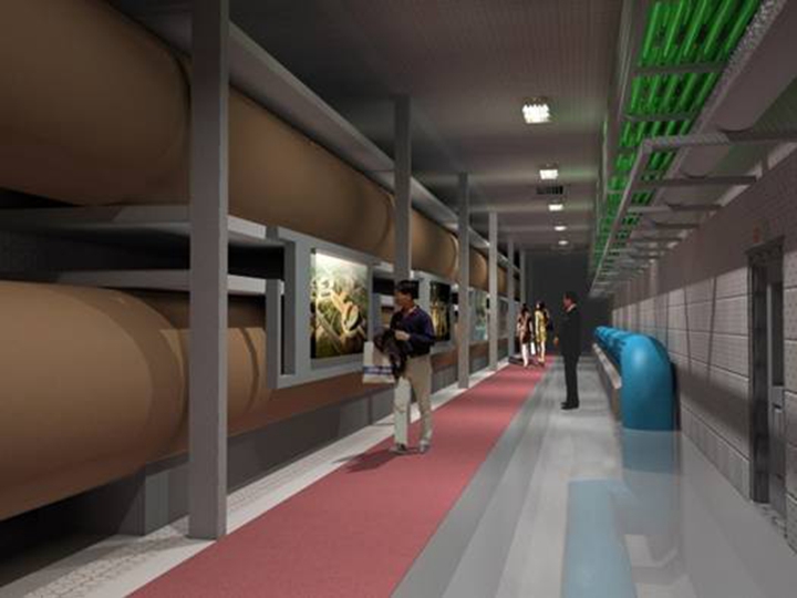 結構復雜,設置三處管廊交叉和一處參觀通道,各種進出線口。