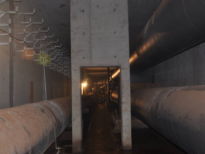 容納的管線較多,包括2DN1000熱力管道、 1DN1000給水管道、1DN900給水管道、弱電管道、220KV110KV、10KV電力管道及預留的中水管道、空調(diào)管、直飲水管道等。