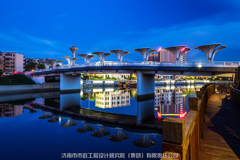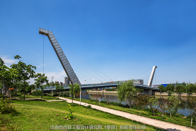 匯集了多種橋型,與小清河的自然環(huán)境、人文景觀有機(jī)地結(jié)合在一起,包括變截面連續(xù)梁橋、斜腿鋼構(gòu)橋、預(yù)應(yīng)力連續(xù)組合梁拱結(jié)構(gòu)、斜拉橋、中承式系桿拱橋等。在考慮結(jié)構(gòu)整體和交通功能的同時,把握城市橋梁的景觀特性,做到工程和景觀的和諧統(tǒng)一。成為城市河道橋梁大量、有機(jī)結(jié)合的典范。